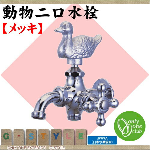 水栓柱 蛇口 補助蛇口 オンリーワンクラブ 【動物二口水栓 二口万能胴長水栓 メッキ】 ガーデニング 庭まわり 水廻り 蛇口